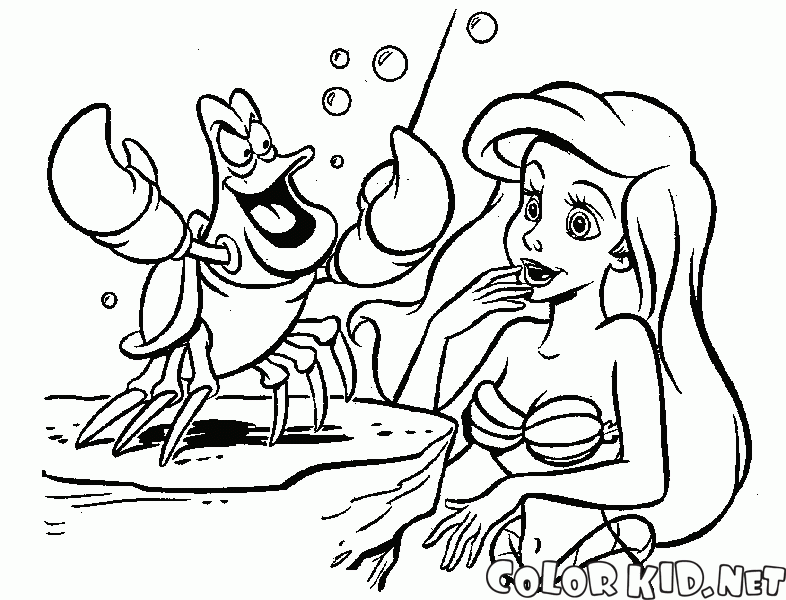 سيباستيان وحورية البحر الصغيرة تلوين صفحة