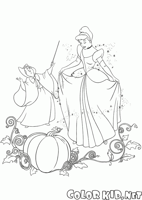 الجنية العرابة وسندريلا تلوين صفحة