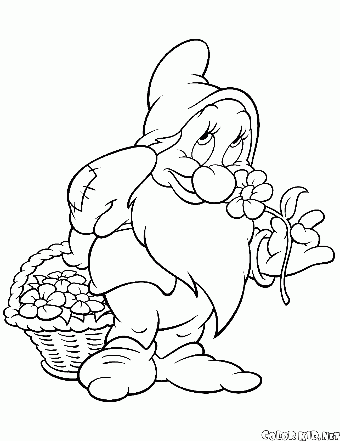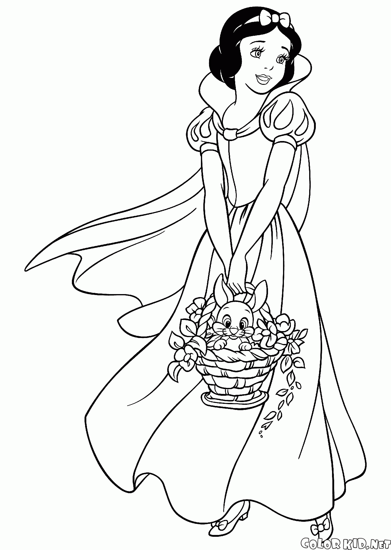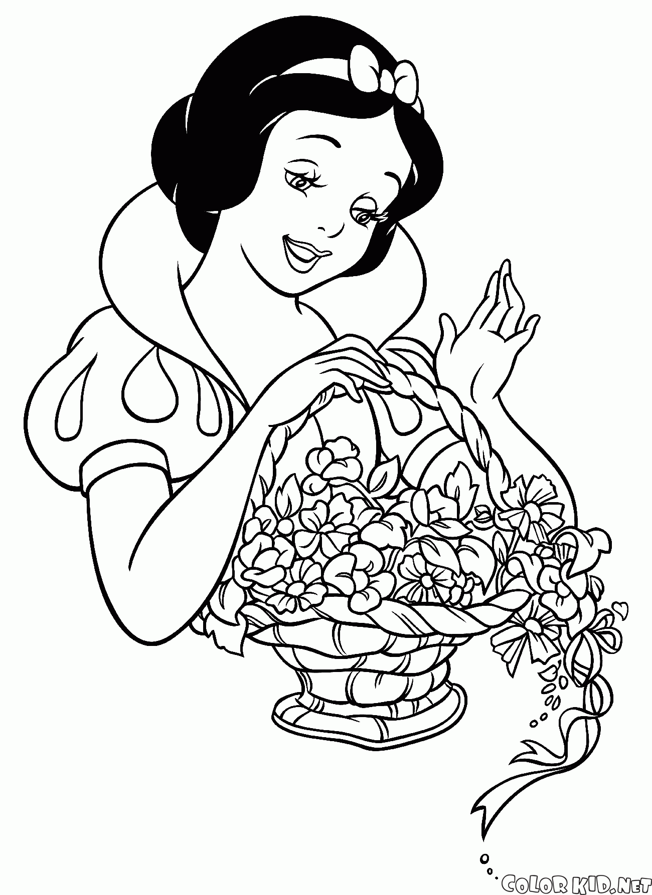 سنو وايت مع سلة من الزهور
