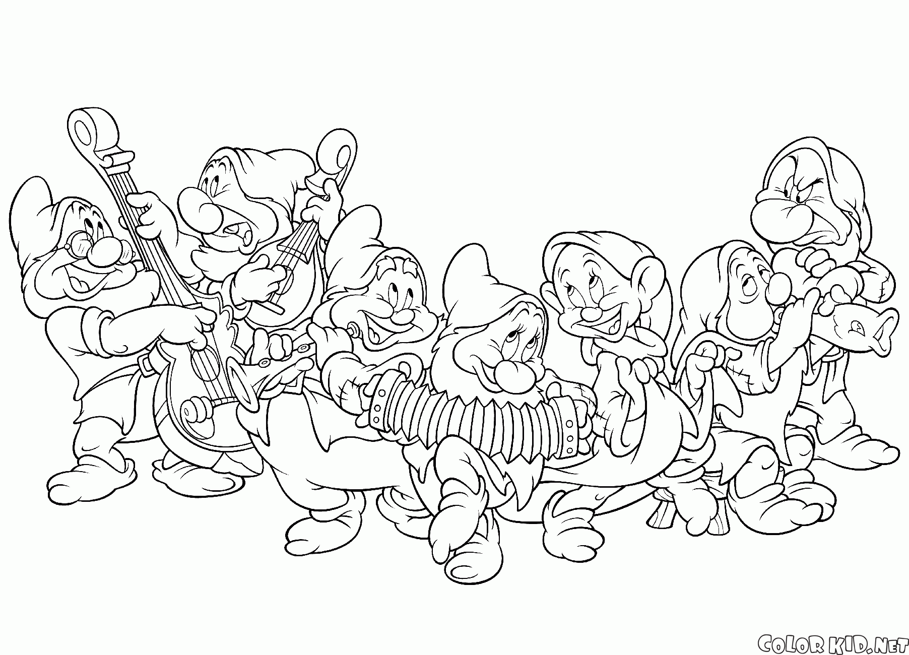 صفحات تلوين - سنووايت والأقزام السبعة