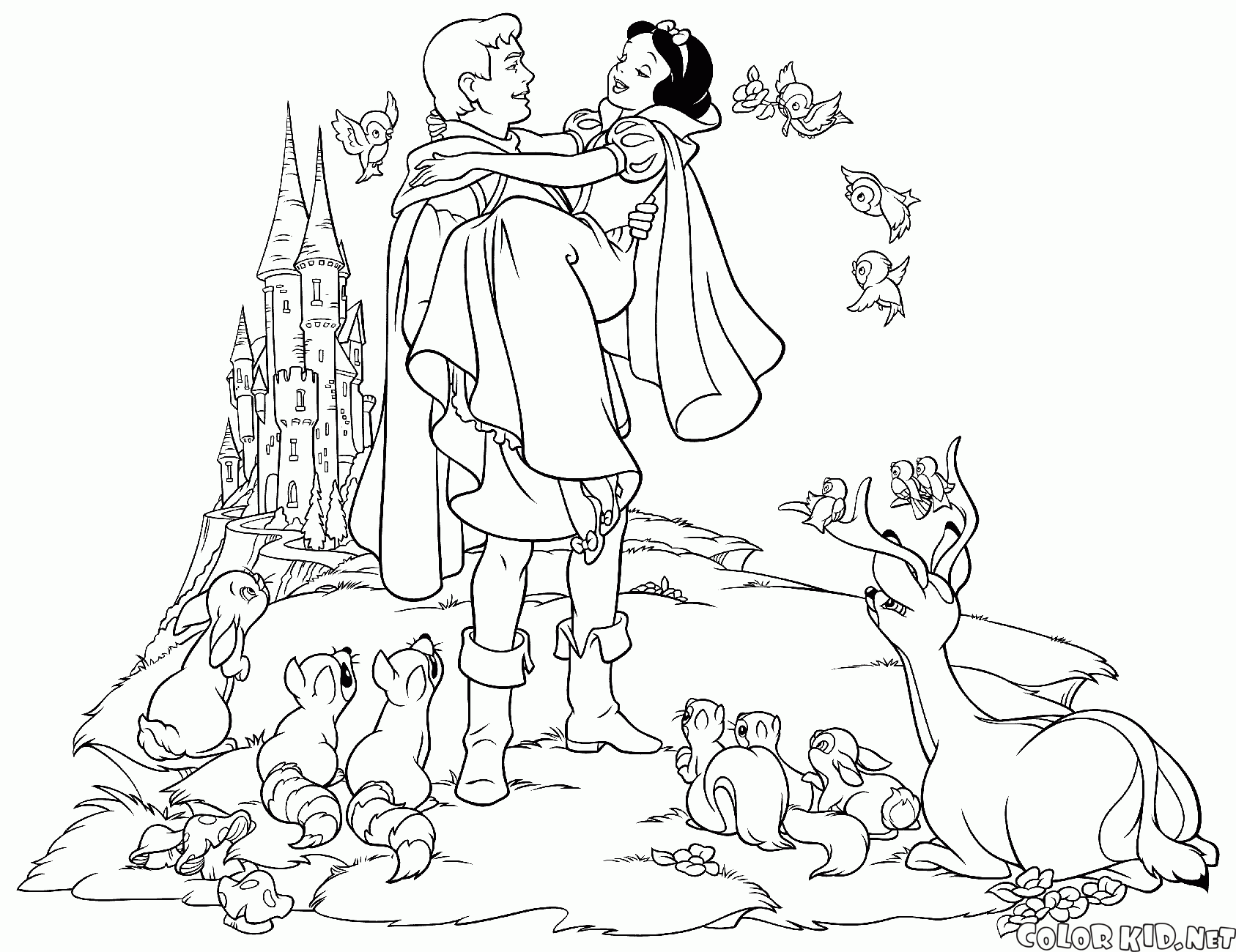 الأمير وسنو وايت الزواج تلوين صفحة