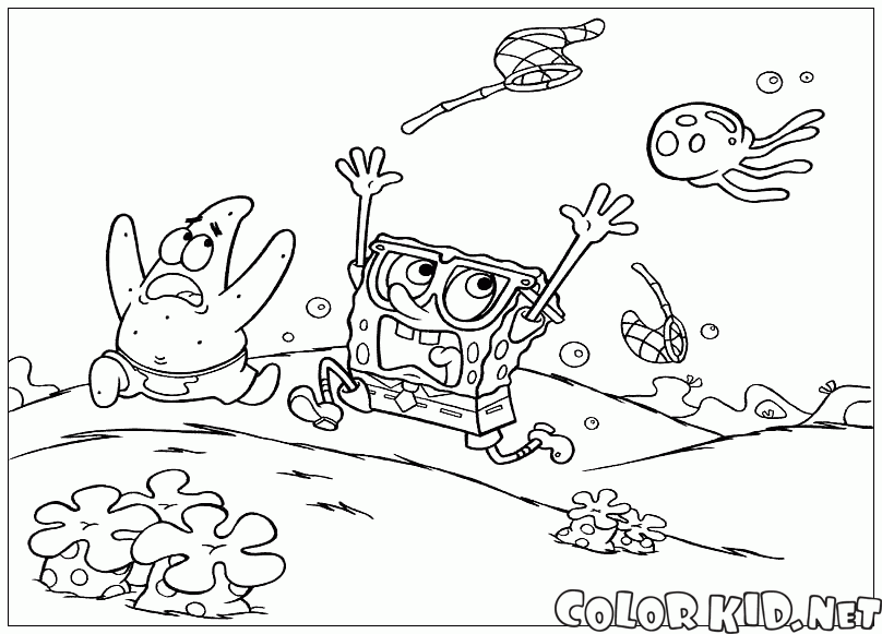 قناديل البحر على مطاردة تلوين صفحة