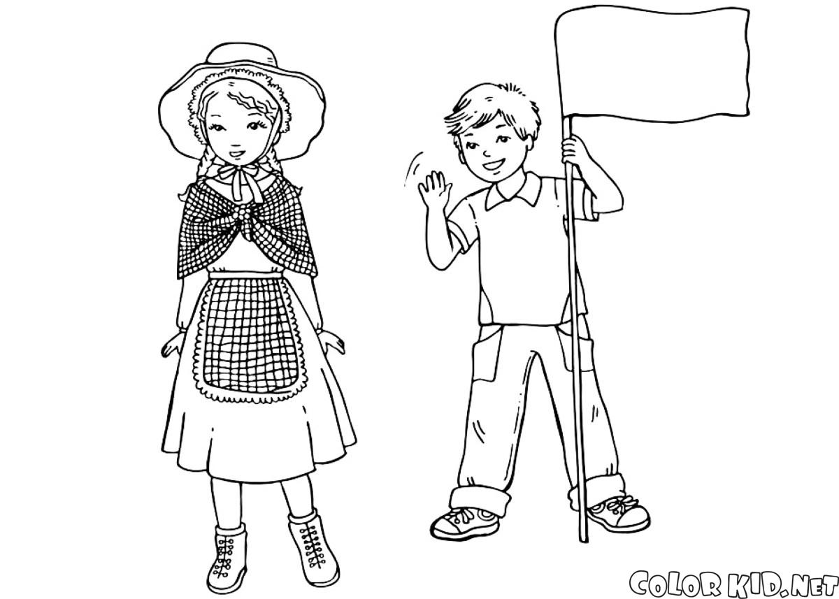 في أطفال في ملابس تقليدية سوف تجد حول العالم صفحات تلوين وغيرها.