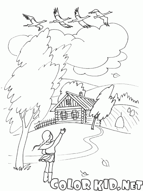 الطيور تطير جنوبا تلوين صفحة