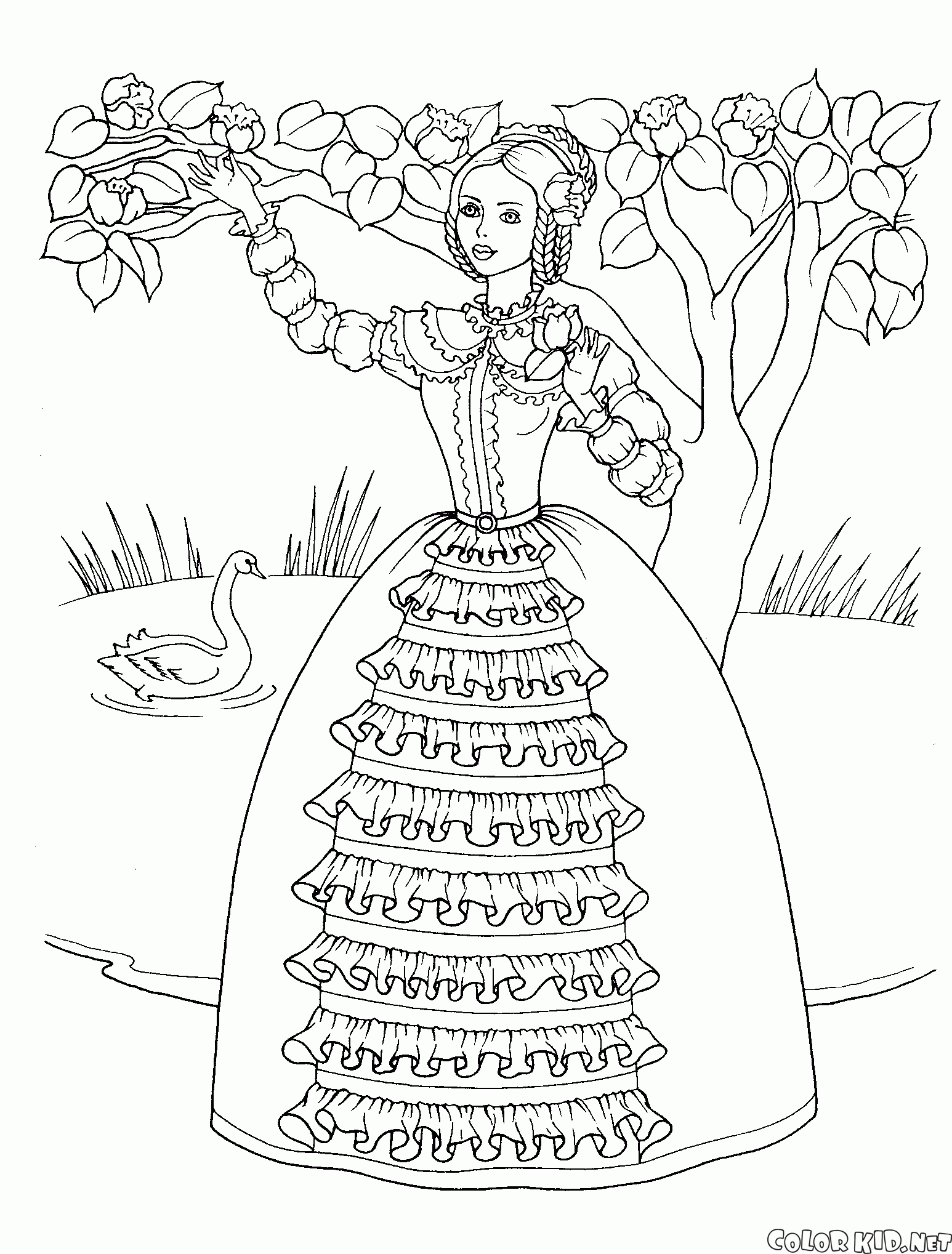 أميرة في الحديقة تلوين صفحة