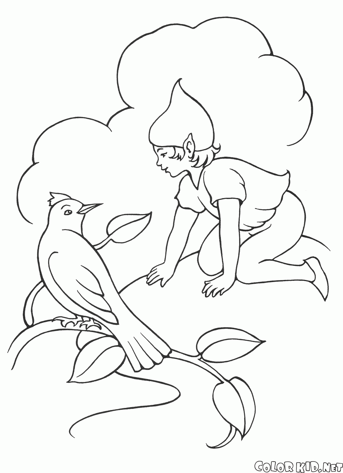 عفريت يتحدث مع الطيور تلوين صفحة