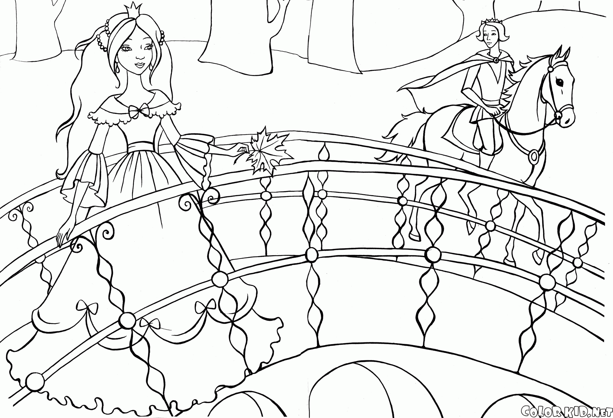 الأميرة على الجسر تلوين صفحة